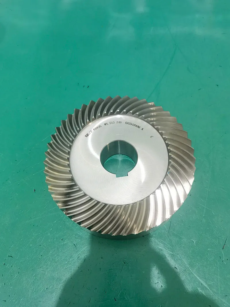Materiales y tratamiento térmico: Tanto los engranajes grandes como los pequeños suelen utilizar materiales que contienen níquel, como 20Cr₂Ni₄A o 18CrNiMo₄-6, que ofrecen mayor tenacidad y maquinabilidad. El tratamiento térmico consiste en carburación y temple, con una profundidad típica de la capa carburada de 2,5 mm y una dureza superficial del diente de HRC58-62.